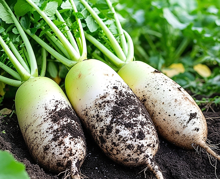 무는 뿌리가 깊게 자라는 작물이라 흙 준비가 매우 중요합니다. 딱딱한 땅보다는 최소 25~30cm 이상 깊이로 충분히 갈아엎은 흙에서 훨씬 곧고 알차게 자랍니다. 돌과 굵은 뿌리는 미리 골라내야 갈라지지 않고 반듯한 겨울무를 기대할 수 있습니다.