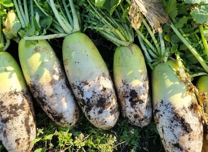 수확된 겨울무 관리에서 가장 먼저 해야 할 일은 잎 정리입니다. 잎을 그대로 두면 무가 잎으로 수분과 영양을 계속 올리려 하기 때문에, 몸통이 금세 힘을 잃고 물러지기 쉽습니다. 그렇다고 완전히 바짝 잘라내기보다는 줄기 부분을 약 0.5cm 정도만 남기고 잘라주는 방식이 많이 쓰입니다.